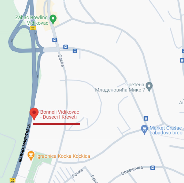 Na google mapi ukucajte DUŠECI I KREVETI GOČKA i pratite put do nas
